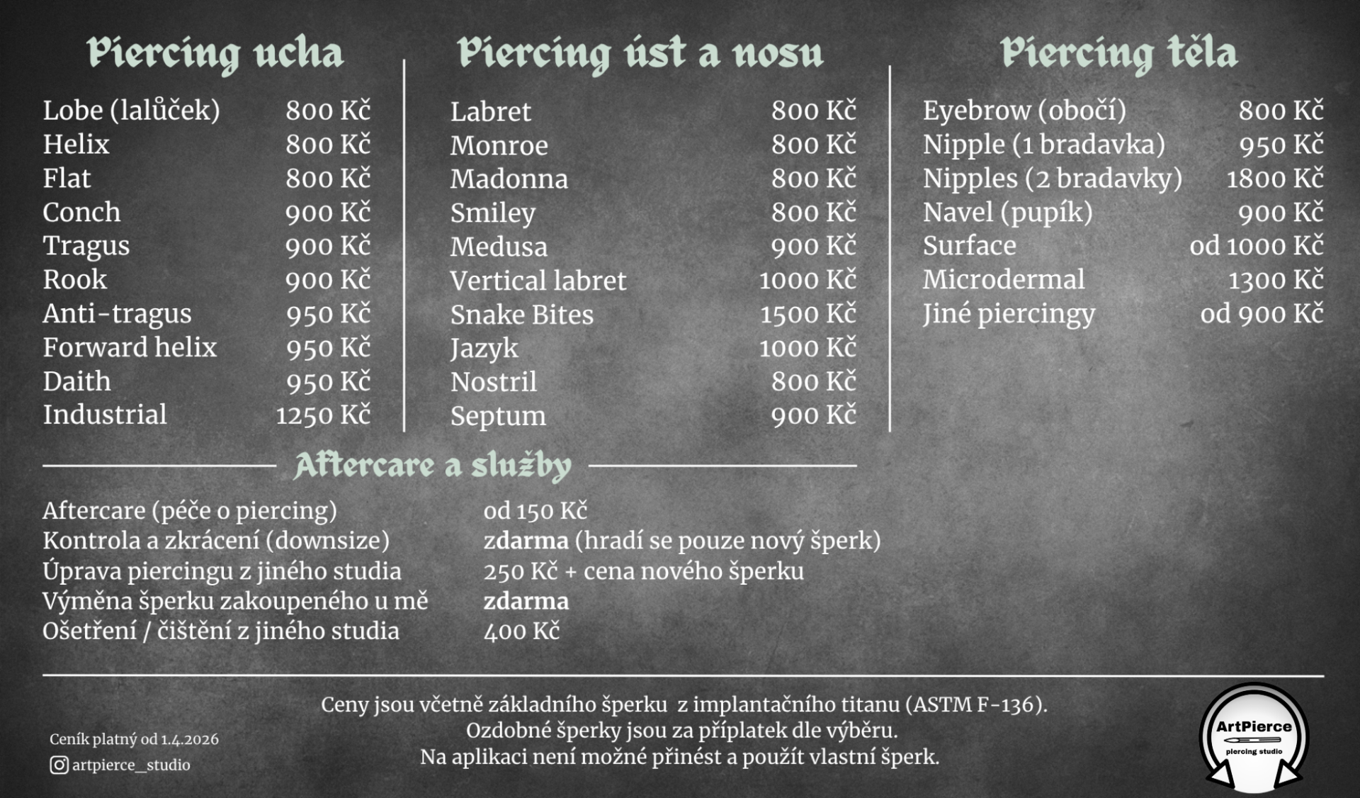 • Aplikační šperky jsou pouze z implantačního titanu ASTM F-136.